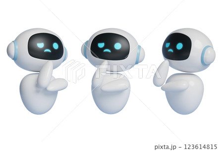 3D graphics of AI robot character guiding pose with smiling face