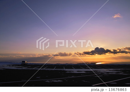 黎明在冬天和冷風停車場