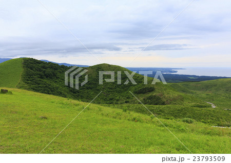 從Kanfuyama山的風景夏天的雲和秋田的日本海