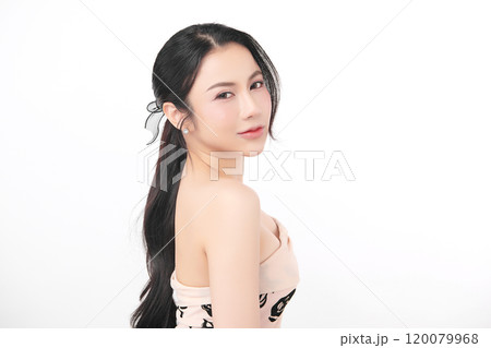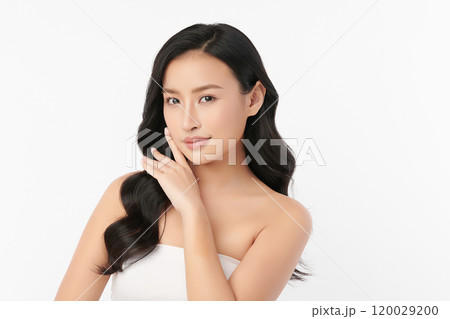 Beautiful young asian woman with clean fresh skin on white background, Face care, Facial treatment, Cosmetology, beauty and spa, Asian women portrait.