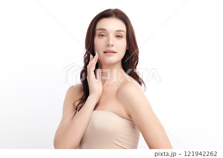 Beautiful young woman with clean fresh skin on white background, Face care, Facial treatment, Cosmetology, beauty and spa, women portrait.