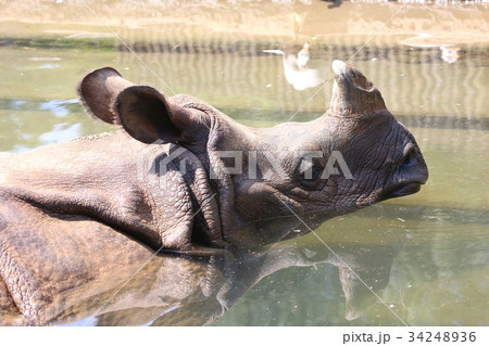 淹沒在水中的印度犀牛。