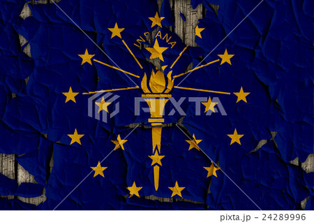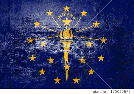 Indiana State Flag. Dirty Indiana state flag on the wall.