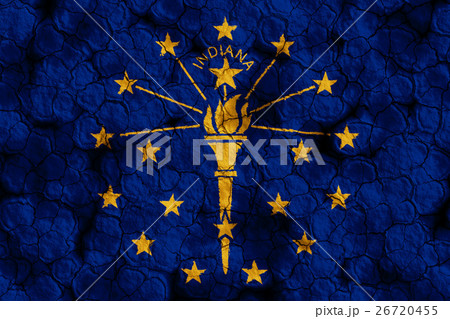 乾裂土壤上的印第安納州旗特寫紋理背景(高分辨率 3D CG 渲染∕著色插圖)飢荒乾旱自然災害