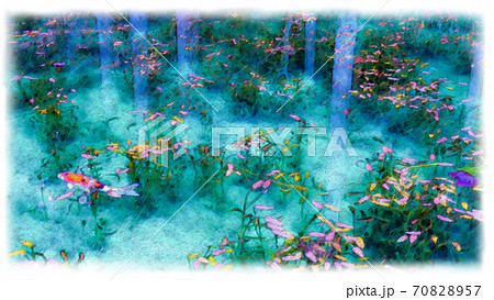 莫奈的池塘在秋天,春天的池塘和鯉魚/秋葉