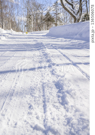 冬季北海道美瑛市積雪覆蓋的冰路