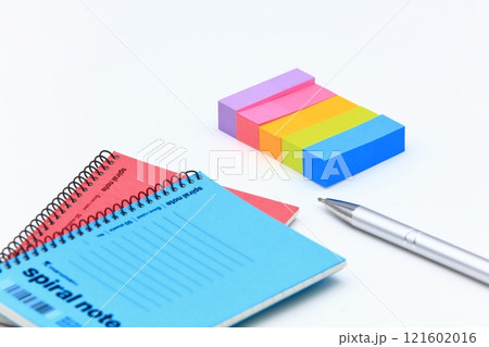 空白記事本筆記本和書寫用具的插圖