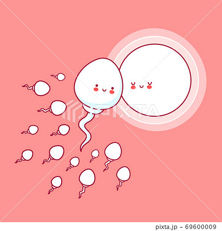 Cute happy funny sperm cell and ovum