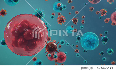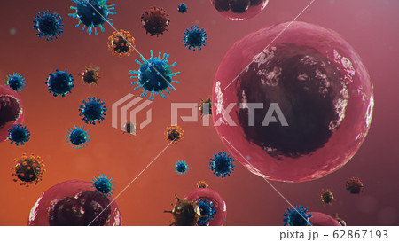 Outbreak of Chinese influenza - called a Coronavirus or 2019-nCoV, which has spread around the world. Danger of a pandemic, epidemic of humanity. Human cells, the virus infects cells. 3d illustration