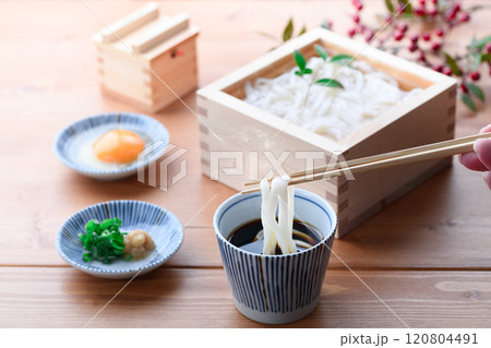 烏龍麵,熱騰騰的烏龍麵,鍋子炸烏冬面,沾上湯,用筷子夾起