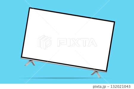 Smart tv with blank white screen levitation in the air on a blue background
