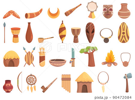 Aborigin icons set cartoon vector. Cultural africa. Totem tribe