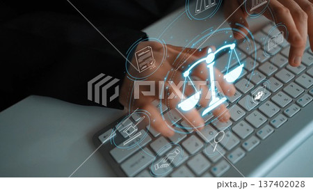 Digital law interface displaying justice scale, highlighting digital law Muxer