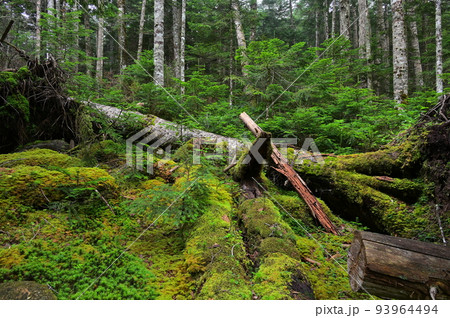 有倒下的樹木的苔蘚森林白駒之森朽木