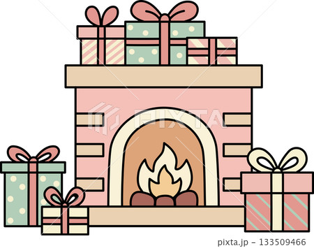 Cute Pastel Christmas Fireplace with Stacked Gifts