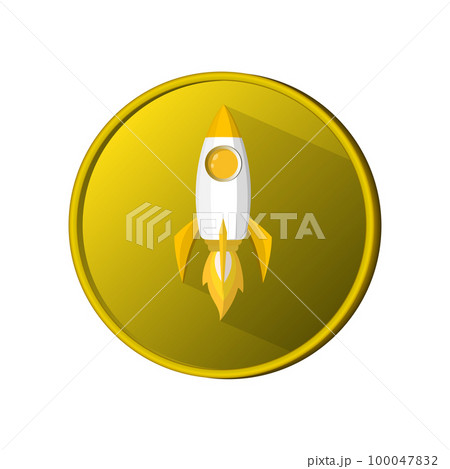 coin space rocket launch model icon and flame. logo or banner
