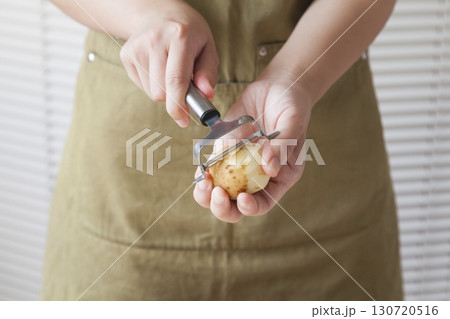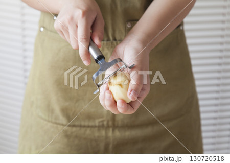 一個女人在廚房裡用削皮器削胡蘿蔔,不露面