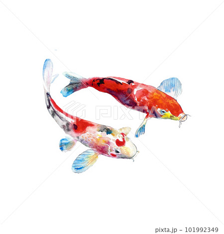 Carp, watercolor carp, fish, koi, Japan, Japanese carps, red koi, white koi, fish in Japan