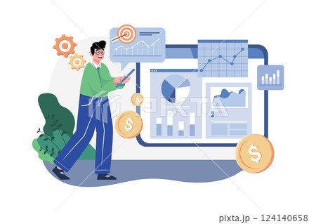 Stock Market analysis Illustration concept. A flat illustration isolated on white background