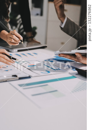 Business idea. Business people talking And calculations about charts and graphs showing the growth of investment results Of successful teamwork