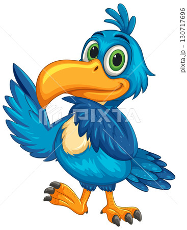 Blue Cartoon Bird with Chick in Nest on Tree Branch