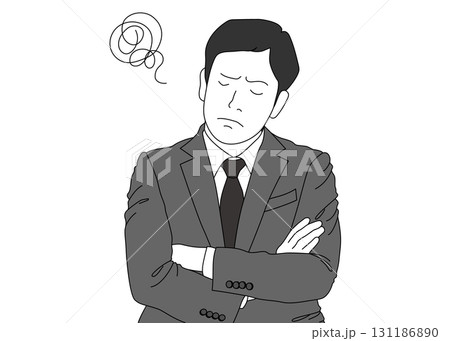 一位憂心忡忡的商人雙臂交叉的插圖,正面圖,單色