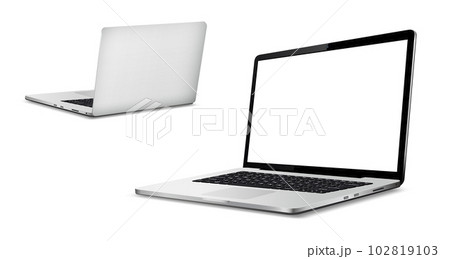 Laptop front and back side mockup isolated on white background