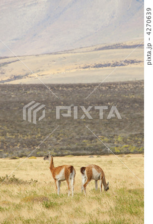 Guanacoes in national park Torres del Paine, Chile, South Americ