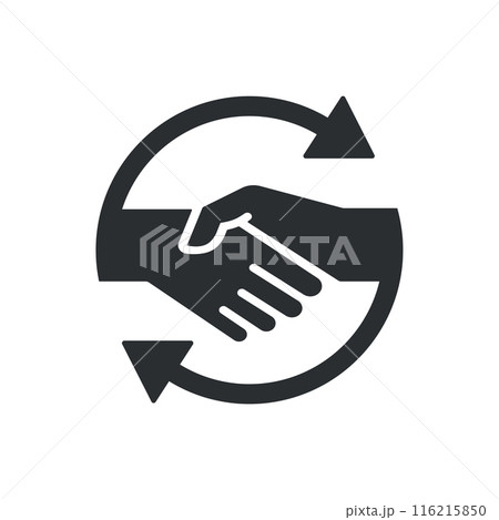 Icon of a handshake enclosed in a circular arrow, representing partnerships and continuous collaboration. Vector illustration.