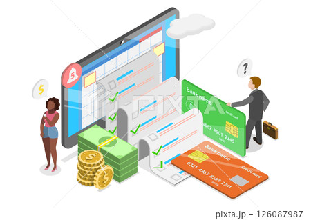 3D Isometric Flat Illustration of Online Banking Receipt, Financial Bill Payment Calendar
