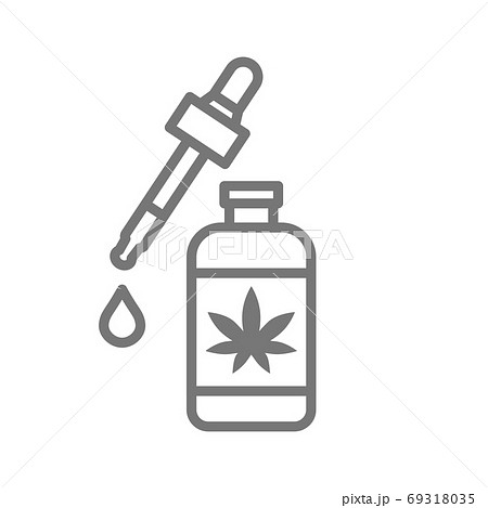Cosmetic bottle icon with CBD oil drop