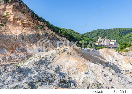 北海道登別市的熱門旅遊勝地登別溫泉風景“登別地獄谷”