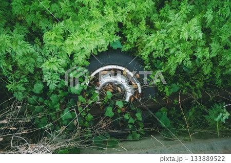 雜草叢生的井蓋