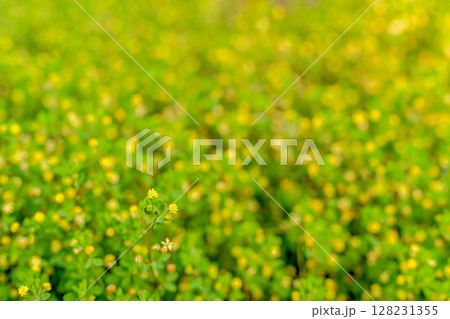 黃色花田的背景材料 花田 背景 三葉草 早晨的顏色