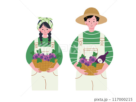 一個男人和一個女人拿著裝滿葡萄的籃子的插圖