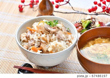 牛和大米(混合米飯),牡蠣球湯,黃瓜和章魚鹽和海帶。