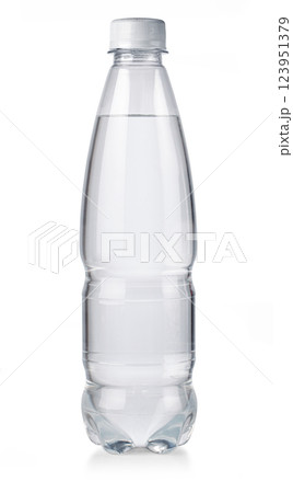 Plastic water bottle showing freshness and purity on white background