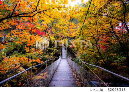 熊本縣阿蘇郡小國町金館溫泉下條紅葉橋南景