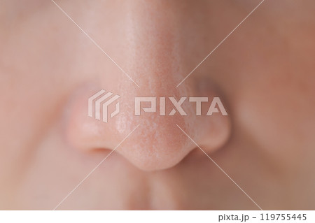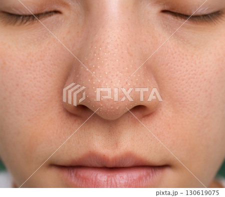 鼻子毛孔被白色角蛋白塞堵塞的特寫