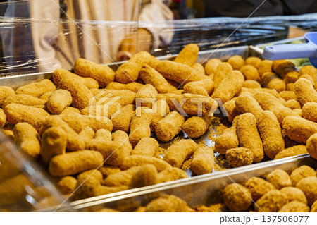 剛起鍋的台灣傳統美食酥炸米腸