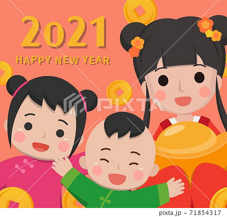 可愛的女孩兒童與寶寶男孩與美女的中國新年賀卡,2021年,慶祝的卡片,卡通漫畫向量插畫