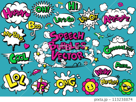 一組有趣的美國漫畫風格的語音氣泡和帶有文字的插圖