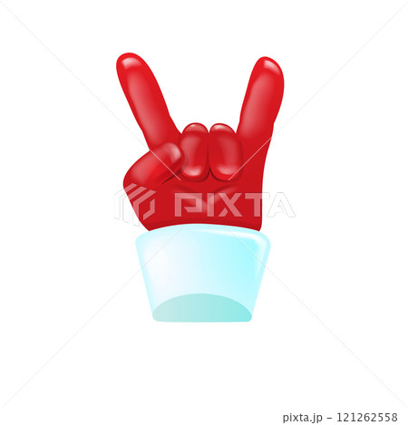 Santa Claus hand rock n roll hand icon isolated on white background. red Christmas Rock concert and party poster, banner, card design template. Funky Santa icon isolated