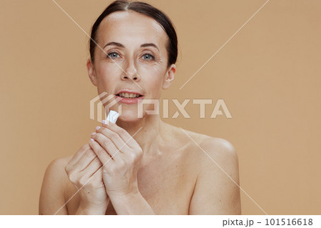 young 40 years old woman with cosmetic elixir