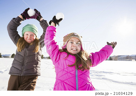 Boy (8-9) and girl (10-11) warming up drinking hot chocolate