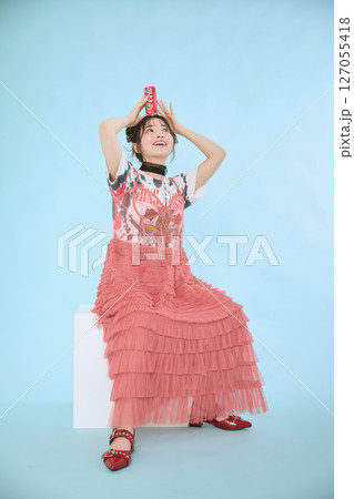 一位身著流行時裝的年輕女子
