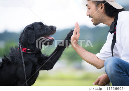 和狗一起散步