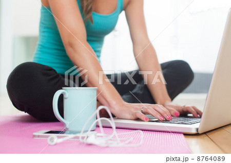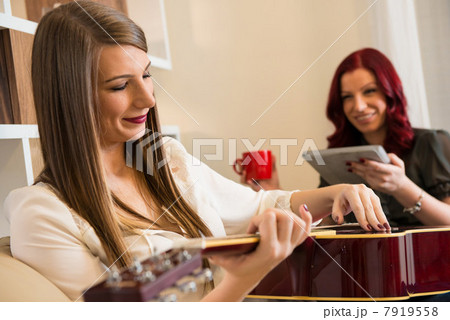 Beautiful Bloggers Socializing On Smartphone and Laptop In Cafe