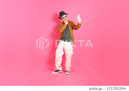 Asian business man using cell phone. Having Conversation, typing sms or presenting.