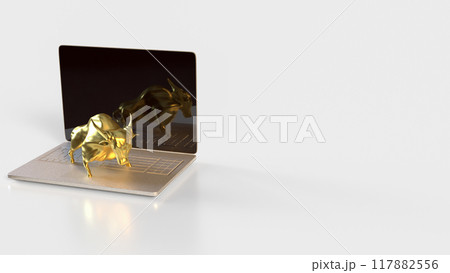 The Gold Bull on laptop for Business concept 3d rendering.